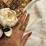 Inspired by flowing curves, our Layered Wavy Ring brings sculptural beauty to your hands. A bold yet minimal designer wavy ring, perfect as a statement ring or a layered stack.