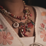 Inspired by the deep sea, our Oceana Blue Charms Necklace showcases ocean-colored stones set in a cascade of elegant charms. This blue statement necklace brings a pop of color and sophistication, perfect for resort wear, evening outfits, or special occasions.